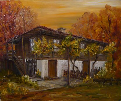 Картината е рисувана с маслени бои върху платно с размери 25 х 30 см, рамкирана.