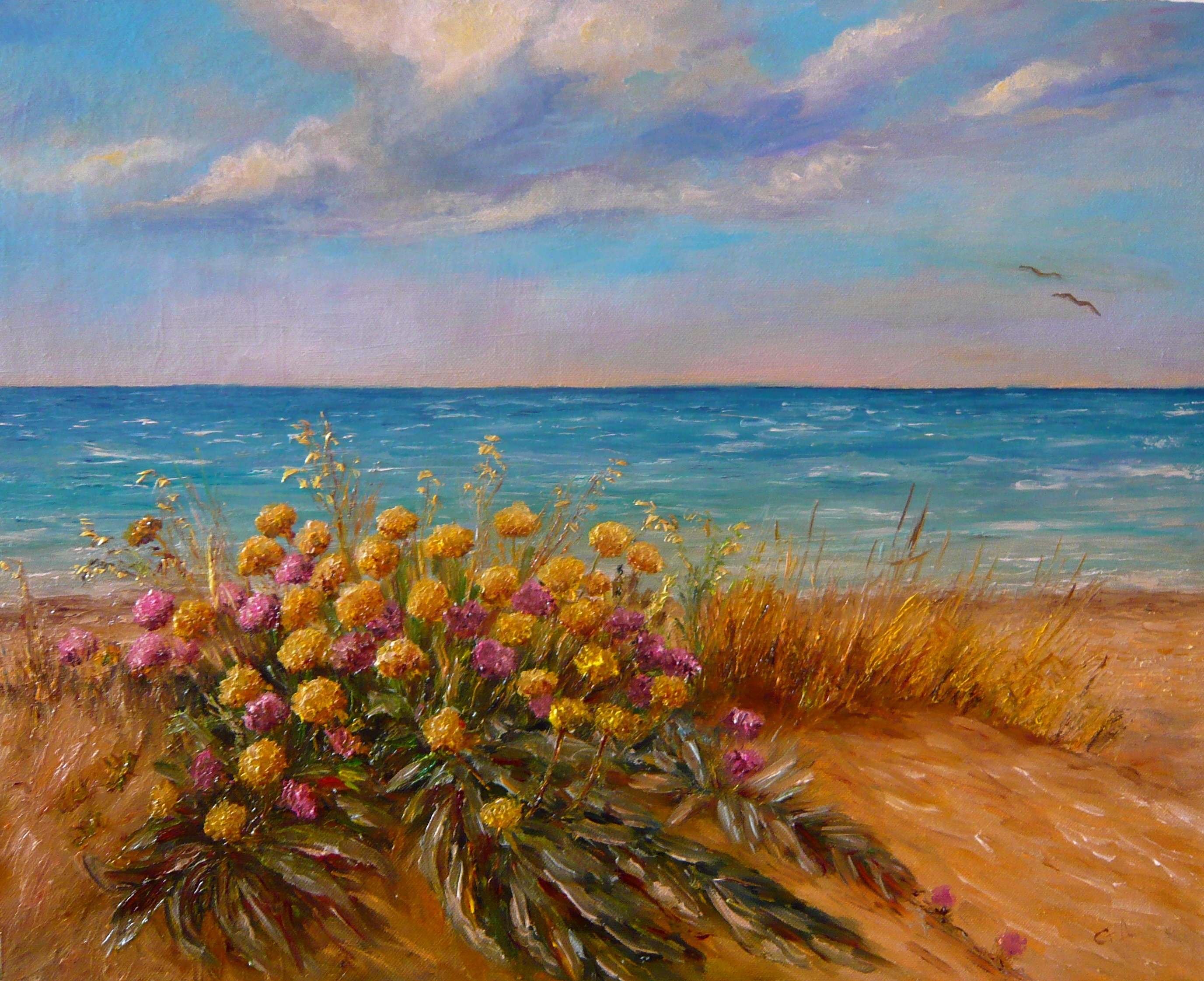 Картината е рисувана с маслени бои върху ленено платно,залепено на фазер, с декоративна рамка.