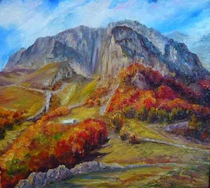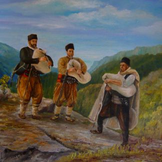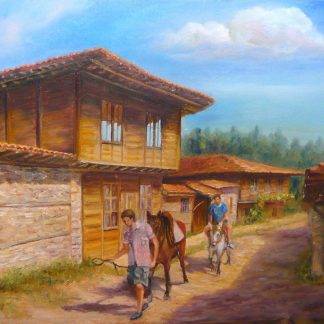 Картината е рисувана с маслени бои върху грундирано и залепено на фазер ленено платно с размери 44 х 47 см.С декоративната рамка размерите са приблизително 53 х 56 см.