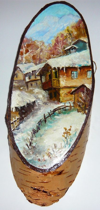 Картината е рисувана с акрилни бои върху бреза с размери 21 х 10 см.Лакирана.