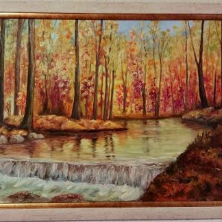 Картината е рисувана с маслени бои върху платно с размери 38 х 46 см, рамкирана.
