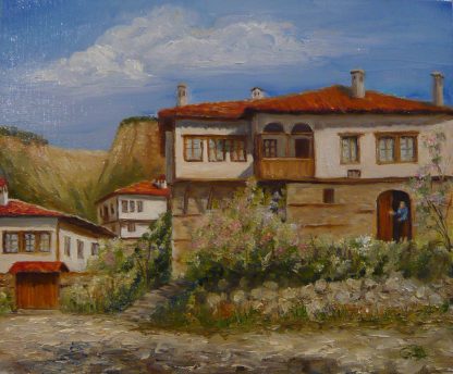 Картината е рисувана с маслени бои върху платно с размери 25 х 30 см, рамкирана.