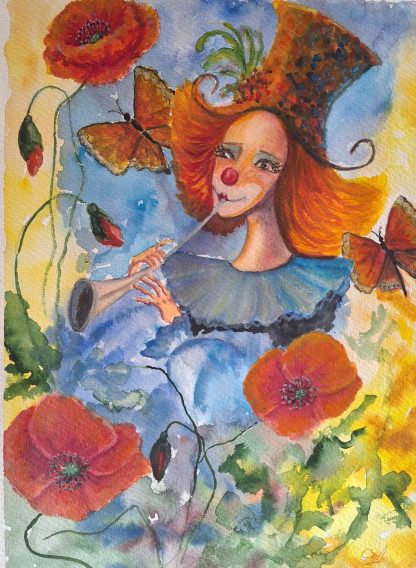 Рисувана с акварел върху памучен картон с размери 37 х 27 см