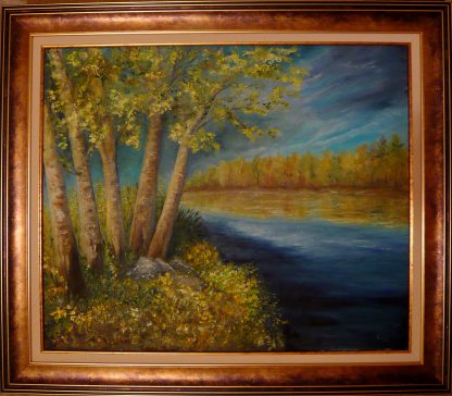Картината е рисувана върху грундирано ленено платно, залепено на фазер.Размерите без декоративната рамка са 50 х 60 см.Рамкирана и готова за окачване.