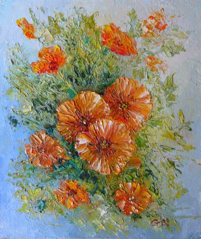 Картината е рисувана самаслени бои върху платно залепено на фазер с рамери 24 х 20 см, рамкирана.