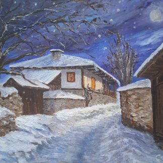 Картината е рисувана с акрилни бои върху платно с размери 30 х 30 см.