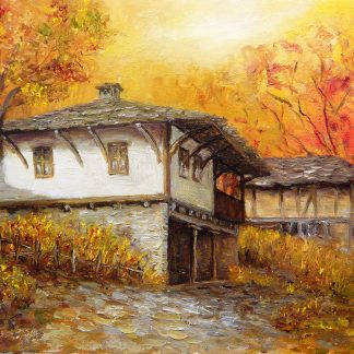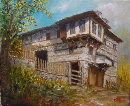 Картината е рисувана с маслени бои върху памучно платно на подрамка, рамкирана.