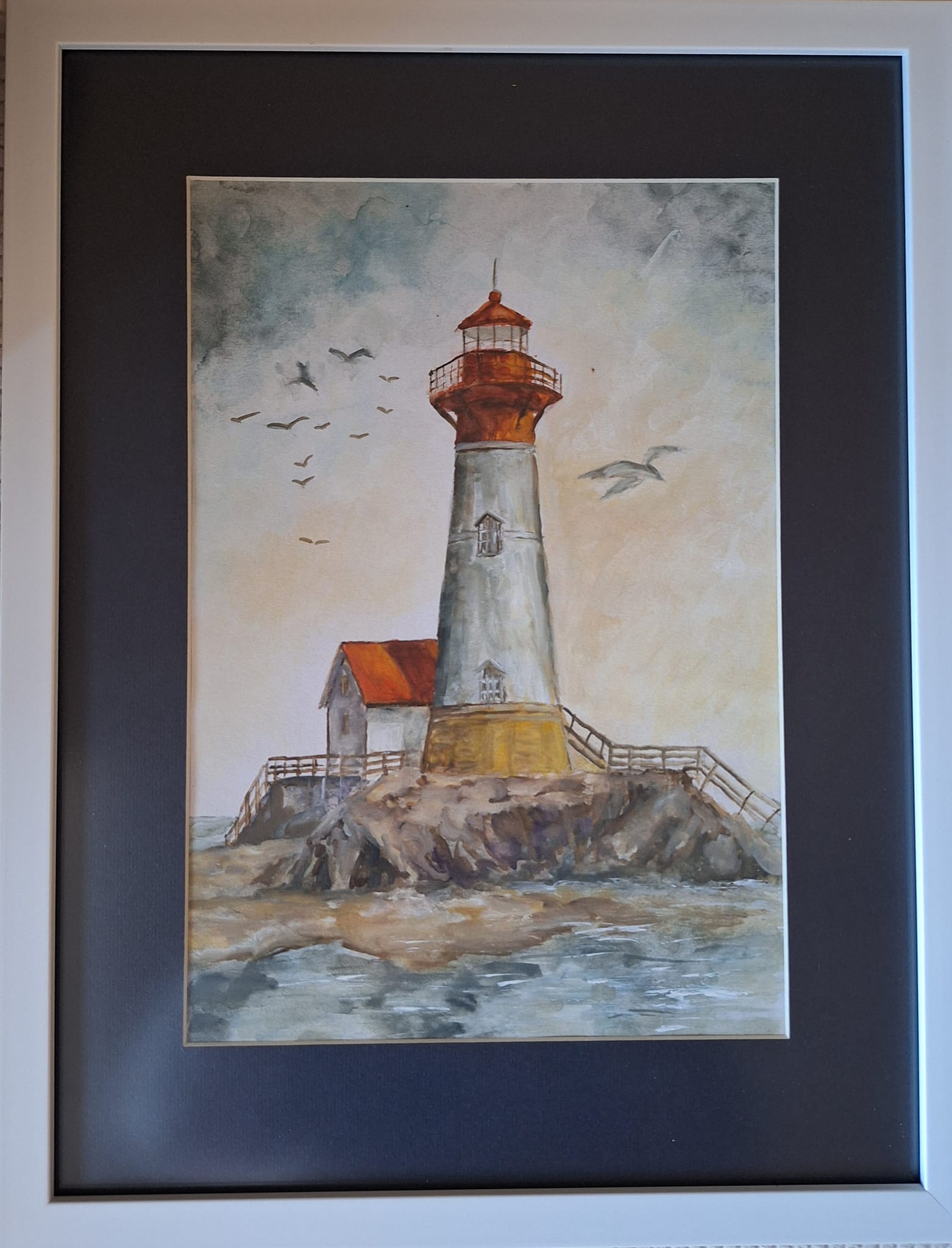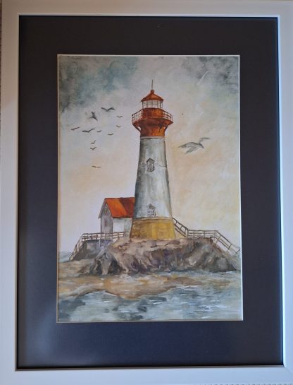 Картината е рисувана с акварел върху акварелен картон,рамкирана.