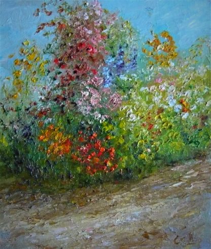 Картината е рисувана с маслени бои върху платно залепено на фазер с размери 24 х 20 см, рамкирана.