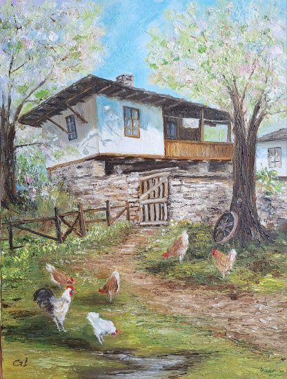 Картината е рисувана с маслени бои върху платно с размери 30 х 50 см, рамкирана.